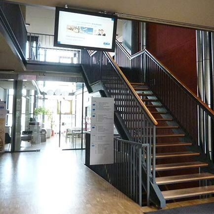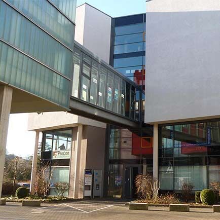 Trotz der Lage im Industriegebiet, in der Nachbarschaft namhafter Unternehmen, ist der Standort von zahlreichen Bäumen umgeben und ermöglicht einen Ausblick auf die umliegenden Berge und Wälder. Das Gebäude Nr. 5 bietet mit seinen vier Stockwerken genügend Platz für viele Teilnehmer. Für Autofahrer sind ca. 200 kostenlose Stellplätze reserviert. Über ein helles Treppenhaus oder mit dem Aufzug erreichen Sie die Schulungsräume, die mit ihren großen Fensterflächen viel Licht hereinlassen.
