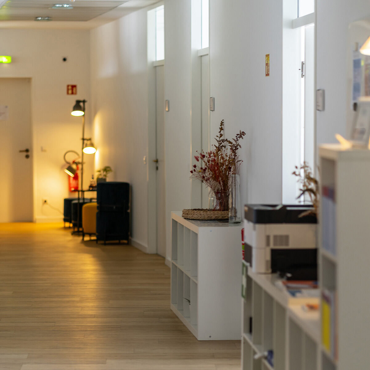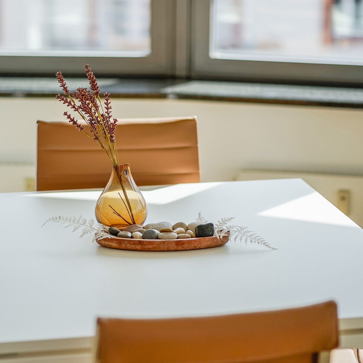 Wir legen viel Wert darauf, Ihnen während Ihrer Fortbildung höchsten Komfort zu bieten. Unsere Seminarräume im fünften Stock sind selbstverständlich per Fahrstuhl zu erreichen. Ein großzügiger Pausenraum mit Stehtischen und Sofas lädt dazu ein, in den Lernpausen zu entspannen und sich mit anderen Weiterbildungsteilnehmern auszutauschen. Auch zwei modern ausgestattete Küchen stehen Ihnen zur Verfügung.