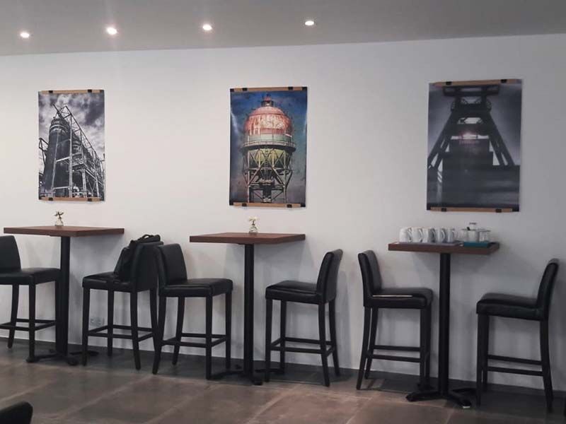 Pause gefällig? In den kleinen Teeküchen können Sie sich mit kostenlosen Getränken versorgen und den Kühlschrank nutzen. Zusätzlich steht Ihnen ein großes Bistro mit 50 Plätzen, WiFi-Zugang, Snack- und Getränkeautomaten zur Verfügung. Hier können Sie sich kostengünstig mit heißen und kalten Getränken versorgen. Hohe Bistrotische, Stehtische und Barstühle mit dunklem Leder sorgen für gehobene Atmosphäre; gerne wird der Raum auch von kleinen Gruppen für gemeinsame Lernphasen genutzt. Wer sich auswärts etwas zu Essen besorgen möchte, findet gleich drei Supermärkte in direkter Nachbarschaft zur Auswahl. Ein kleiner Park in der Nähe lädt zum Spaziergang ein.