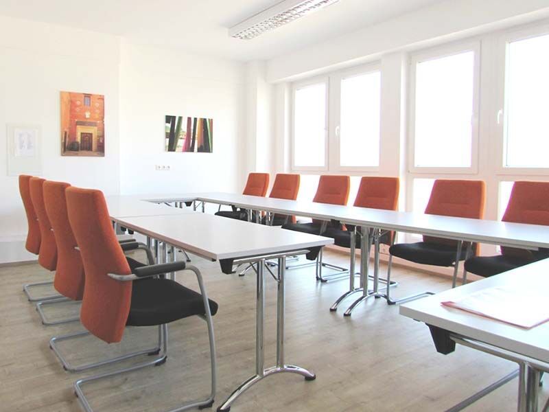 Trotz der lebendigen Umgebung bleibt es beim Lernen schön ruhig: Die freundlichen und hellen Schulungsräume in der ersten und dritten Etage gehen meist in Richtung Innenhof. Der Boden in Holzoptik, das moderne und funktionale Mobiliar und eine zeitgemäße technische Ausstattung sorgen für eine angenehme Lernumgebung.
