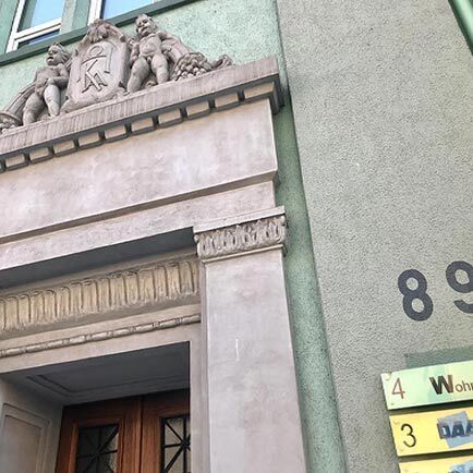 Ihre Schulungsräume befinden sich im ehemaligen Gebäude der stadtbekannten Silber- und Metallwarenmanufaktur Hohmann & Katz AG. Über dem Eingang sieht man noch das Wappen, das von zwei Putten gehalten wird. Bei Bedarf bringt Sie ein Aufzug zu den Räumen im zweiten und dritten Stock. Mit hohen Decken, vielen Fenstern, ansprechenden Kunstwerken an den Wänden und weiterer Dekoration sorgen sie für optimale Lern- und Arbeitsbedingungen, bei denen Sie sich wohlfühlen.