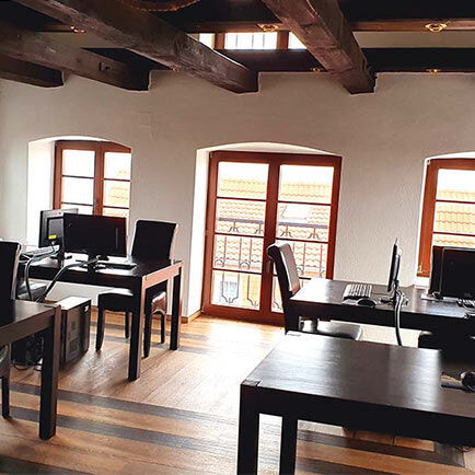 Das IBB Rostock finden Sie seit 2013 in einem der berühmtesten Baudenkmäler der Hansestadt direkt am Stadthafen. In dem ehemaligen Getreidespeicher von 1850 haben wir für unsere Teilnehmer in historischem Ambiente zwölf helle und moderne Schulungsräume eingerichtet. Hier lernen Sie zum Beispiel mit Blick auf das Warnowufer im Stadthafen oder über die Dächerlandschaft der mittelalterlichen Altstadt. Die Unterrichtszeiten liegen zwischen 8 und 16:15 Uhr.